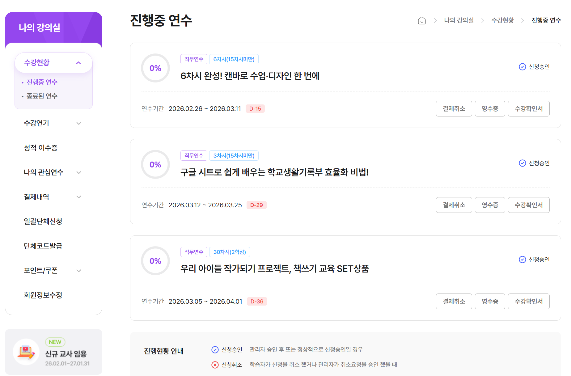 POINT 02나만의 연수 홈수강 중인 연수, 이수증, 쿠폰·포인트까지